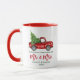 Modern Brush Script Our First Christmas as Mr. and Mrs. Watercolor Vintage Red Truck with Christmas Tree Coffee Mug - Red, Green and White