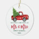 Modern Brush Script Our First Christmas as Mr. and Mrs. - Watercolor Vintage Red Truck Ornament - Photo back