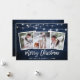 Rustic Blue Wood Brush Script 3 Photo Merry Christmas Card with String Lights