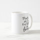 White mug featuring stylish black brush script of the quote "though she be but little she is fierce" from A Midsummer Night's Dream by William Shakespeare.