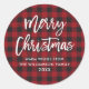 Brush Script Merry Christmas Red Buffalo Plaid Classic Round Sticker