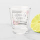 Modern Brush Script, Watercolor Pink Blush Floral with Black and White Stripes Mr. and Mrs. Wedding Shot Glass