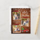 Modern Brush Script Merry Christmas 3 Photo Collage Holiday Postcard includes Red Plaid Craft Tape and Watercolor Vintage Red Truck with Christmas Tree. Rustic Country Wood with String Lights.
