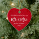 Modern Brush Script Our First Christmas as Mr. and Mrs. Red Heart Ornament - Photo Back