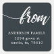 brush script "from" with swash on different colour backgrounds for modern return address sticker