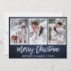 Rustic Blue Wood Brush Script 3 Photo Merry Christmas Card