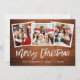 Rustic Wood Brush Script 3 Photo Family Merry Christmas Card