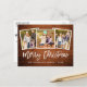 Brush Script Rustic Wood 3 Photo Family Christmas Postcard