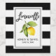 Modern Brush Script, Elegant Watercolor Lemon Greenery Limoncello Wedding Bottle Labels with Black and White Stripes