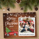 Modern Brush Script, Watercolor Vintage Red Truck with Christmas Tree, Instant Camera Style Photo Merry Christmas Postcard - Rustic Wood and String Lights