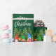 Modern Brush Script Merry Christmas Colourful Fun Watercolor Gnomes with Pine Trees Wrapping Paper - Forest Green