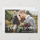 Modern Brush Script Wedding Photo Thank You So Much Card - White Script, Rustic Wood Back