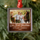 Modern Brush Script, Rustic Wood Our First Christmas Wedding Photo Ornament