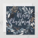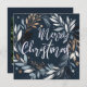 Brush stroke wreath Blue Merry Christmas Holiday Card