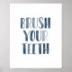 Brush Your Teeth Navy Blue Kids Bathroom Poster