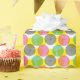 Multicolored abstract pattern with arc wheels and dots, a playful decor.