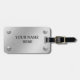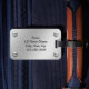 A customisable luggage tag with a brushed aluminium effect and screws.