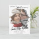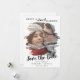 This brushed merry and almost married save the date holiday card is the perfect simple holiday greeting for an engaged couple. The unique and artistic design features your photo in watercolor painted brush strokes with modern calligraphy in black and white. Personalise the card with your engagement photo, names, wedding date.