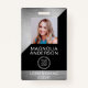 This modern name badge design can be customised with your business name, logo and contact details as well as an employee photo and barcode.