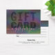 Professional modern brushed metal illustration with iridescent colourful holographic overlay in rainbow shades. Trendy gift certificate with bold serif font and hand-lettered Script. Does not contain a real hologram.