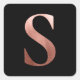Brushed Metal Rose Gold Monogram S Black Square Sticker