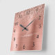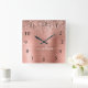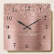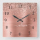 Brushed Metal Rose Gold Pink Glitter Monogram Square Wall Clock