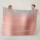 Brushed Metal Rose Gold Silver Glitter Monogram Fleece Blanket