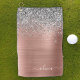 Brushed Metal Rose Gold Silver Glitter Monogram Golf Towel