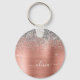 Brushed Metal Rose Gold Silver Glitter Monogram Key Ring