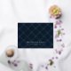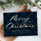 Elegant holiday card featuring "Merry Christmas" displayed in a gold foil calligraphy script on a painted navy plaid background. Personalise the front of the rustic non-photo holiday card by adding your name and the year. The back of the card features a matching plaid background with subtle white snow dots.