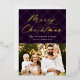 Elegant holiday photo card featuring "Merry Christmas" displayed in a gold foil calligraphy script at the top of the design on a painted purple plaid background. Personalize the front of the card by adding your name, year, and a photo. The gold foil Christmas card reverses to display 2 additional photos on a matching plaid background with subtle white snow dots. The multi-photo Christmas card is perfect for displaying your favorite family photos!