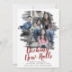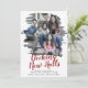 This brushed red decking new halls moving announcement holiday card is the perfect simple holiday greeting and to announce your new address. The unique and artistic design features your photo in watercolor painted brush strokes with modern calligraphy in red and white. Personalise the card with your family photo, names and year on the front and your new address on the back.