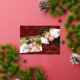 Elegant holiday photo card featuring "Merry" in a gold foil calligraphy script on a painted red plaid background. Personalise the front by adding two of your favourite photos, a greeting, name, and year. The rustic gold foil Christmas card reverses to display an additional photo with a snowy red plaid background.