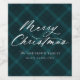 Brushed Teal Plaid Merry Christmas Wine Label