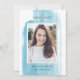 This graduation card announcement features a pretty minimal desiign with watercolor brushstrokes in watercolor sky blue with a room for a vertical senior picture of your beautiful grad! Personalise the card adding your photo, name and year. Add an extra message on the back using the template.