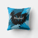 Brushstrokes shades of blue name with monogram cushion