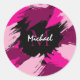 Brushstrokes shades of hot pink name with monogram classic round sticker