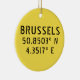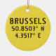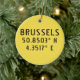 Ceramic ornament with Brussels Belgium latitude and longitude map coordinates in modern urban font. Customise with your own text on back