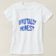 Bright coloured slightly shaped text, BRUTALLY HONEST. The design has a faux textured appearance in shades of blues accented with pinks and purples. If you say it as you see it without concern for political correctness or refuse to tell someone what they want to hear, this may be the shirt for you. Available for guys and gals in a large selection of styles and colours.
