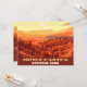 The red towering hoodoo spires and mountains are on display in this card of Bryce Canyon National Park in Utah. This double-sided card can be used as a table "number" sign for a wedding.