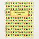 Fun planner with colourful pattern of tiny Bryn Mawr lanterns. Hand drawing of lanterns in all the class colours, red, green, light blue and dark blue. Set on yellow background. Perfect for the Bryn Mawr alumna or student to keep organised as she celebrates alma mater.