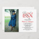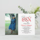 Fun typography BSN nurse photo graduation invitation with room for two events. Large red BSN with nurse hat (with graduation year), stethoscope and syringe art with room for a nurse quote on the back.