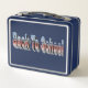 This is a standard metal lunchbox that appears to work just fine. We designed this box ourselves with an uploaded photo and custom text on the front and back. It looks absolutely beautiful except the front of the lunchbox is not centered like it shows in the photo. The print borders don't align with the inset flat part of the box where the preview photo online showed it perfectly centered in there. The back looks nice and centered though.