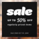 Customise all of the colours and text below "Sale". "Sale" graphic can be scaled or edited in colour, or deleted to add your own text. You can also add a background colour and choose the opaque.