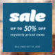 Customise all of the colours and text below "Sale". "Sale" graphic can be scaled or edited in colour, or deleted to add your own text. You can also add a background colour and choose the opaque.