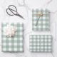 Traditional cottagecore gingham plaid pattern with shades of cool sage laurel eucalyptus green on solid white. This design has a fixed background, but the size and position of the pattern can be changed. This pattern matches the Bubble Frogs designs. This product consists of three sheets of wrapping paper, each with a slightly different scale of the pattern.