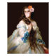Pop art remix of a vintage painting of a woman with two flowers in her hair blowing a pink bubble gum