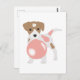 Dog blowing a pink bubble...that's pretty special. Cool pup chewing bubble gum and blowing a pink bubble. The doggy's spots are starting to turn pink. Modern art design ideal for anyone. Pet puppy animal illustration with a funny twist.