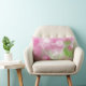 Pastel watercolor splotches in pinks and greens with clear bubble hearts in front - very unique - This design is subtle and colourful- playful yet sophisticated - each side of the pillow is slightly different to give you a variety in one big pillow