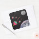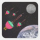 A holiday space fantasy with bubble light space ships orbiting the Earth with the moon in the distance and a starry sky background. A science fiction art illusion.
